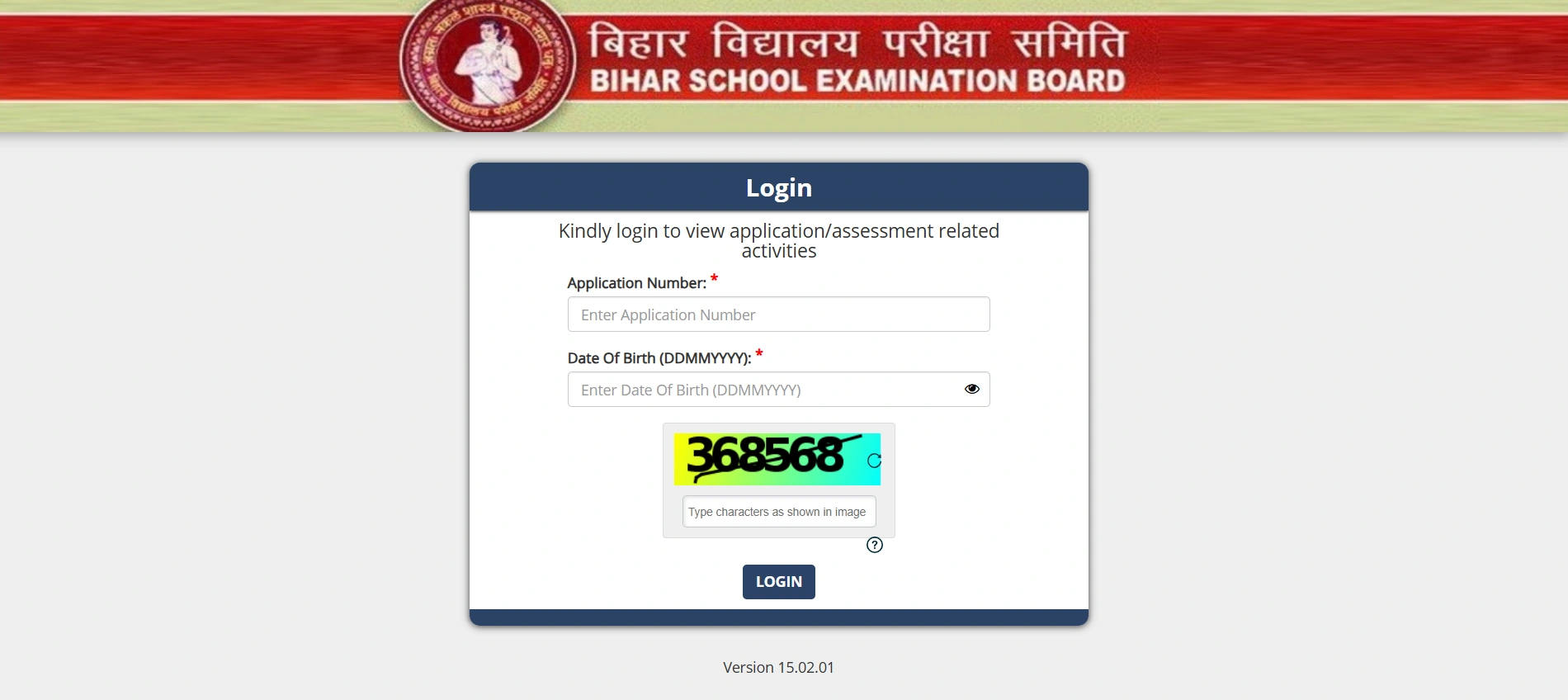 3. Enter login details: Application Number / User ID / Roll Number / Password / Date of Birth