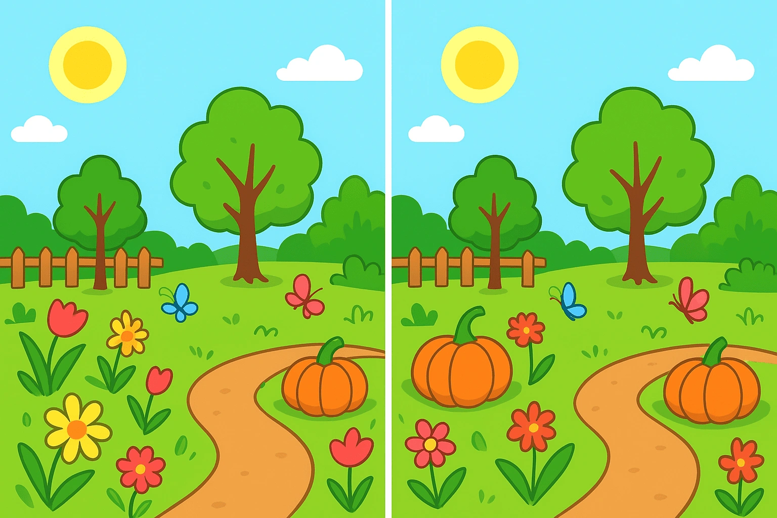If you’re a fan of brain games, this Spot the Difference puzzle will put your observation skills to the test. At first glance, the two garden scenes look almost identical, but five subtle differences are cleverly hidden for you to discover.