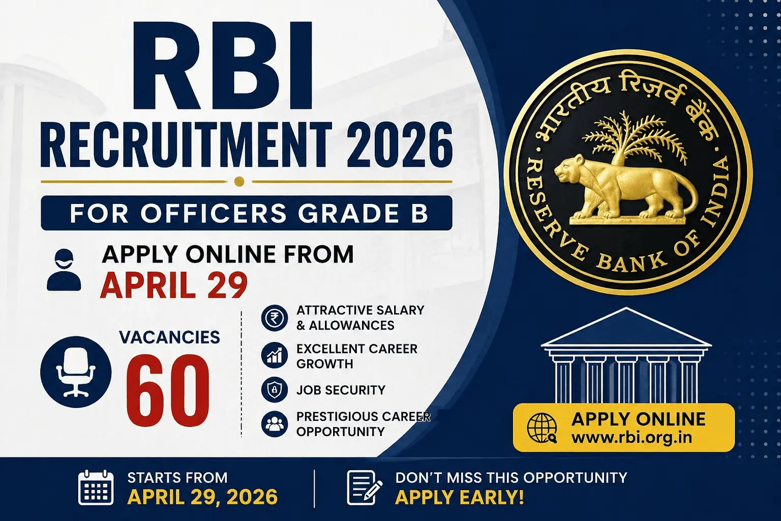 Reserve Bank of India (RBI) has come up with an announcement regarding its RBI Officers Grade B Recruitment 2026, thus providing another golden chance to candidates who want to work in the banking sector. As per the information provided, a total of 60 vacancies will be filled, and the application process will commence on April 29, 2026.