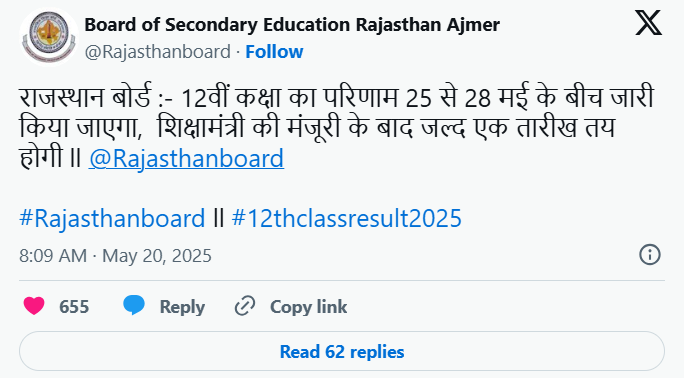 The Rajasthan Board announced this tentative result date via its verified X account. Students are encouraged to frequently monitor the board’s official social media channels and website for the latest and most accurate updates.