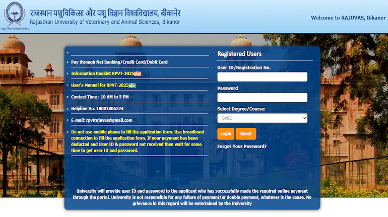 Step 1. Go to the official RAJUVAS website at rajuvas.org.
