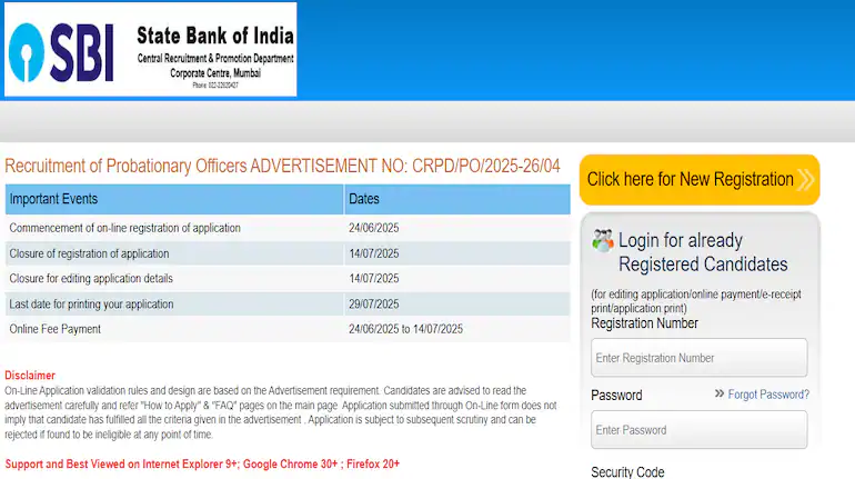 SBI PO 2025 registration closes today, July 14! Submit your application now for 541 vacancies at sbi.co.in. Review the steps, eligibility, and fee details before applying.